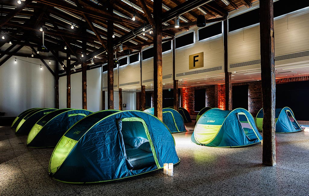 Tervetuloa ainutlaatuiseen sisätilojen telttamajoittumiseen Katajanokan Wanhan Sataman tiloissa. Palvelumme tarjoaa vierailijalle unohtumattoman vierailukokemuksen uniikissa makasiiniympäristössä.